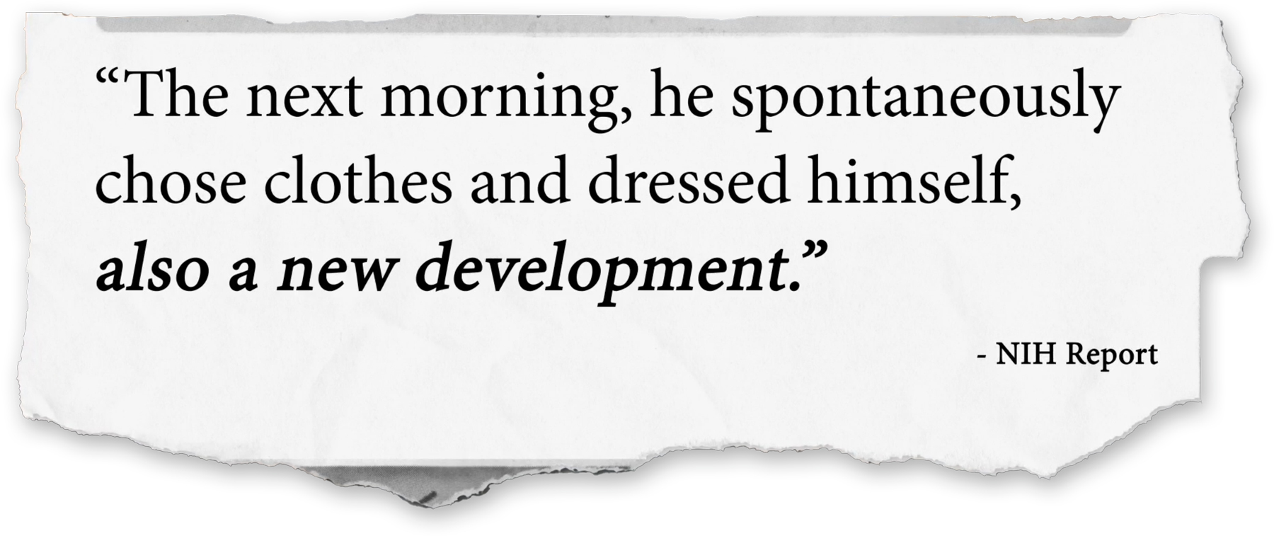 "The next morning, he spontaneously chose clothes and dressed himself. Also a new development. On the third day, he began to initiate and complete many other activities without prompting or assistance, including showering, shaving, brushing teeth, finding his way around the house, choosing and ordering food from a menu, and distributing utensils from the dishwasher. These activities had not been observed for months." – NIH Report